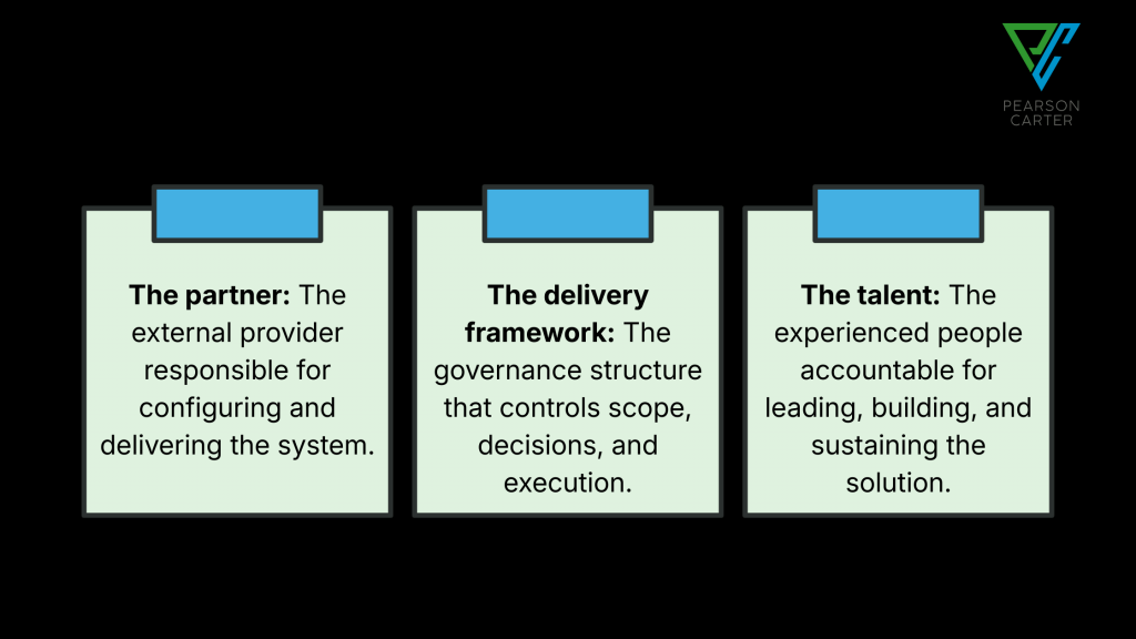 Without clearly defined accountability across these roles, implementation services can become fragmented. Decisions slow down. Scope expands informally. Ownership becomes unclear.This is particularly true in mid-sized organisations adopting Microsoft Dynamics 365 Business Central, where internal ERP experience may be limited and governance structures are still evolving.In these cases, the issue is rarely partner capability. It’s more of an internal readiness issue. Bringing in the right permanent hire or interim specialist early in the programme reduces rework, shortens stabilisation periods, and strengthens long-term platform ownership.In other words, governance is not something you write, but it is something you staff.